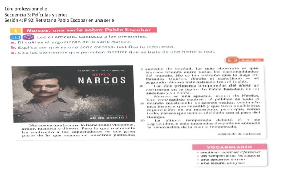 1ère professionnelle Secuencia 3: Películas y series Sesión 4: P 92: Retratar a Pablo Escobar en una serie