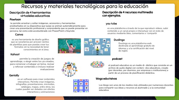Descripción de 4 recursos multimedia con ejemplos.
