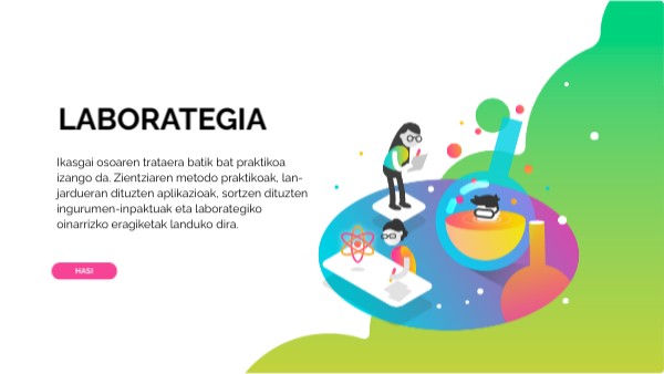 Laborategi baten antolaketa eta praktiketan erabiliko diren materialak eta substantziak ezagutuko dituzue.