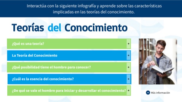 Interactúa con la siguiente infografía y aprende sobre las características implicadas en las teorías del conocimiento.