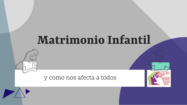 Luis Alfonso Mendoza Tascón, Diana Isabel Claros Benítez Laura Isabel Mendoza Tascón, Claudia Bibiana Peñaranda Ospina, Martha Deyfilia Arias Guatibonza, Jorge Hernán Carrillo Bejarano, Zoolange Sarria Henao. (junio 2006). Matrimonio Infantil: Un problema social, económico y de salud pública. Revista chilena de obstetricia y ginecología. SciELO. https://www.scielo.cl/scielo.php?script=sci_arttext&pid=S0717-75262016000300013 María Luisa Santillán. (25 de noviembre, 2021). De niñas a esposas. La problemática del matrimonio infantil. Ciencia UNAM. Universidad Autónoma de México. https://ciencia.unam.mx/leer/1195/de-ninas-a-esposas-la-problematica-del-matrimonio-infantil UN. (10 de diciembre 1948). Declaración Universal de los derechos humanos. https://www.un.org/es/about-us/universal-declaration-of-human-rights Prepa en Línea SEP. (21 de abril de 2015) Servicio Nacional de Bachillerato en Línea. -Prepa en Línea. [Imagen] Gobierno de México. Servicio Nacional de Bachillerato en Línea.- Prepa en Línea | Secretaría de Educación Pública | Gobierno | gob.mx (www.gob.mx) Castrejón Bárbara. (25 de noviembre, 2021). De niñas a esposas. La problemática del matrimonio infantil. Shutterstock. [Imagen 1 y 2] Ciencia UNAM. Universidad Nacional Autónoma de México. https://ciencia.unam.mx/leer/1195/de-ninas-a-esposas-la-problematica-del-matrimonio-infantil UNICEF. (s/f). Matrimonio infantil y uniones tempranas en América Latina y el Caribe. [Imagen 3 y 7] https://www.unicef.org/lac/matrimonio-infantil-y-uniones-tempranas-en-am%C3%A9rica-latina-y-el-caribe AmecoPress. (01 de julio, 2022). El matrimonio infantoil se dispara en el cuerno de África tras la peor sequía en 40 años. [Imagen4] AmecoPress. Información para la igualdad. https://amecopress.net/El-matrimonio-infantil-se-dispara-en-el-Cuerno-de-Africa-tras-la-peor-sequia-en-40-anos