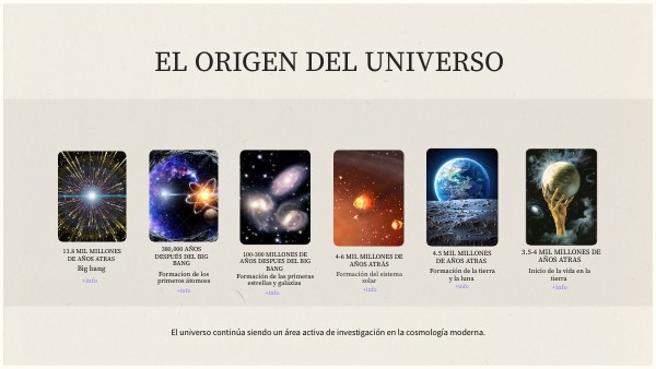 Se cree que el universo se originó a partir de una singularidad extremadamente caliente y denso, exponiéndose y enfriándose con el tiempo.