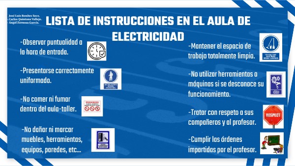 LISTA de instrucciones EN EL AULA DE ELECTRICIDAD