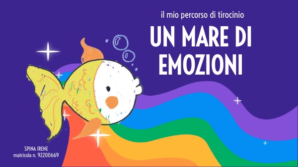 C'era una volta tanto tempo fa, in un mare cristallino, pie-no di alghe verdi splendenti e di rossi coralli, tantissimi pe-sciolini, i quali erano liberi di nuotare, di andare di qua e di là e di fare tante giravolte. Un giorno un pescatore arrivò con la sua barchetta. Scoprì questo mare magico e disse: Porterò qualche pesciolino a Mimì! e cominciò a pescare proprio lì. Lanciò la sua rete in mare. Quattro pesciolini catturò e in un acquario di vetro rotondo li portò: Di che colore erano questi pesciolini? Un pesciolino era giallo, uno blu, uno vio-la e uno rosso. E sapete come si chiamavano? Il pesciolino giallo “Felice”, il pesciolino blu “Triste”, il pe-sciolino viola “Paura” e il pesciolino rosso “Rabbia”. Paura, il pesce viola, tremava, era impaurito perché era stato portato lontano dalla sua famiglia e dai suoi amici e poi lui preferiva guardare il mondo nascondendosi dietro le rocce e le alghe marine. Rabbia, il pesce rosso, nuotava so-spirando, infastidito da tutto e da tutti, perché non amava cambiare le proprie abitudini. Triste, il pesce blu invece, nuotava lentamente, con il viso abbattuto, portando con sé un alone di malinconia, perché a lui piaceva tanto vivere in quel mare magico ed è proprio lì che voleva tornare! Felice, il pesce giallo, era pieno di gioia, saltellava su e giù con un sorriso luminoso. Lui era l’unico ad essere contento, e sapete perché? perché non aveva né una mamma, né un papà e in fondo al mare non aveva amici con cui giocare! Lì invece era diverso, non era più da solo! Ma il pesciolino guardava e riguardava i suoi amici e decise di aiutarli.