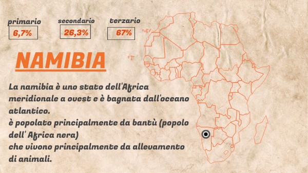 La namibia è uno stato dell'Africa meridionale a ovest e è bagnata dall'oceano atlantico.è popolato principalmente da bantù (popolo dell' Africa nera) che vivono principalmente da allevamento di animali.