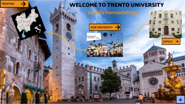 DThe University of Trento is located in one of the most fascinating Italian regions: Trentino. Known for its mountains, the Dolomites, one of UNESCO's world heritage sites, Trentino is a borderland between the Mediterranean area and Central Europe. The region has always benefited from its location to innovate and create new ideas, a sort of Silicon Valley in the Alps, as some media have dubbed it. An ideal place to live, have fun, practice sport.!