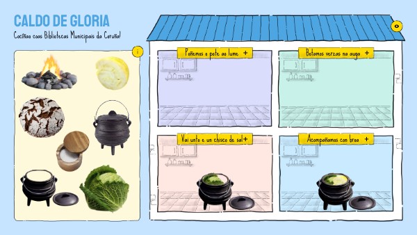 que era cousa de envidiar. Iniciativa "Caldo de Gloria" A fundación Rosalía de Castro convídanos a celebrar o Día de Rosalía (23F) elaborando un caldo de gloria tal e como o vai describindo a poeta en "Miña casiña, meu lar". Desde as Bibliotecas Municipais da Coruña convidámosvos a elaboralo tamén de xeito virtual.