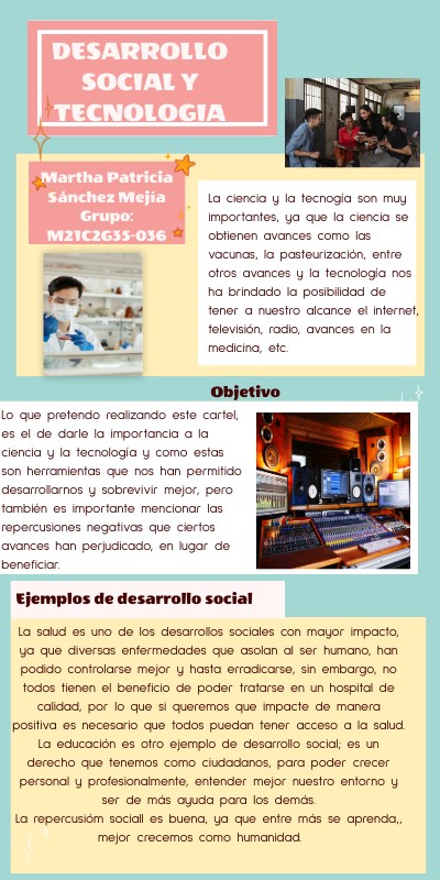 Lo que pretendo realizando este cartel, es el de darle la importancia a la ciencia y la tecnología y como estas son herramientas que nos han permitido desarrollarnos y sobrevivir mejor, pero también es importante mencionar las repercusiones negativas que ciertos avances han perjudicado, en lugar de beneficiar.