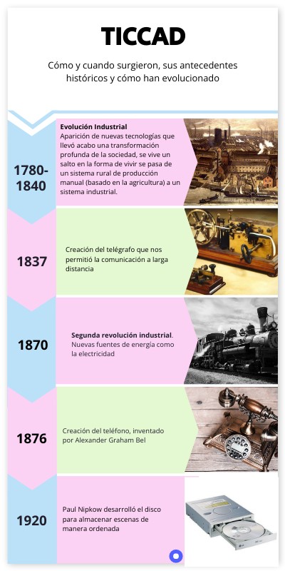 La evolución del teléfono celular. (25 de enero de 2024). Tecnologías de la información. UDLAP. https://blog.udlap.mx/blog/2011/01/25/evoluciondeltelefonocelular/#:~:text=Origen%20del%20tel%C3%A9fono%20celular,celular%20comercial%2C%20el%20DynaTac%208000X. -Beladelfa. C. (16 de mayo 2021). Medio siglo del primer correo electrónico: todavía no podemos vivir sin él. The conversation. https://theconversation.com/medio-siglo-del-primer-correo-electronico-todavia-no-podemos-vivir-sin-el-154089#:~:text=Ray%20Tomlinson%2C%20un%20ingeniero%20de,de%20un%20trabajo%20en%20equipo. La evolución de las TICs. Origen e historia. (s/f). Suma Móvil. https://sumamovil.pe/blog/la-evolucion-de-las-tics-origen-e-historia/ Fernandez, B. (s/f). Linea del tiempo de las TICCAD. Timeline. https://www.timetoast.com/timelines/linea-del-tiempo-de-las-tic-a2a19264-e3c0-4b32-88fe-8f67dbea940a Martínez, R., Palma, A. & Velásquez, A. (2020). Revolución tecnológica e inclusión social: reflexiones sobre desafios y oportunidades para la política social en América Látina. Serie políticas sociales. Crow-lx. (19 de octubre 2021). Historia de las TICS l Sucesos historicos. https://youtu.be/DhWHOtFV_JM?feature=shared PwC Mexico. (26 de mayo de 2021). La evolución de la tecnología. [Archivo de video]. YouTube. https://youtu.be/NEzvnGbfljs?si=_obYTphOyVJCU4VJ Academia Play. (1 de mayo de 2019). La revolución industrial en 7 minutos. [ Archivo de video]. YouTube. https://youtu.be/3LQAnFEADl4?si=_oZj2lWasusjSLEo INTEGRANTES: Angie Camila Bautista Ponce Paola Lizbeth Najera Villanueva Mayra Alejandra Rodríguez Montelongo
