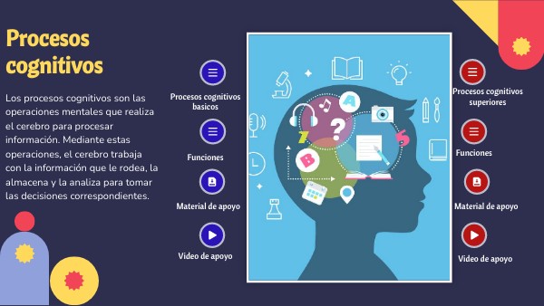 Los procesos cognitivos básicos son funciones mentales fundamentales que nos permiten procesar la información de nuestro entorno. Incluyen: