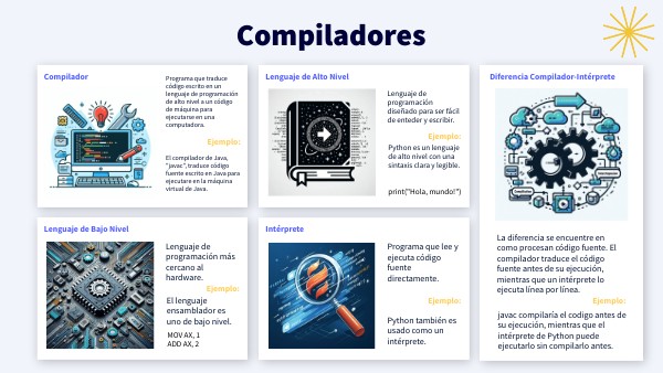 Programa que traduce código escrito en un lenguaje de programación de alto nivel a un código de máquina para ejecutarse en una computadora.