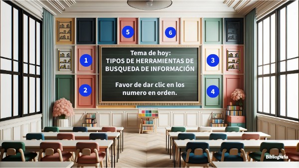 Tema de hoy: TIPOS DE HERRAMIENTAS DE BUSQUEDA DE INFORMACIÓN Favor de dar clic en los numero en orden.