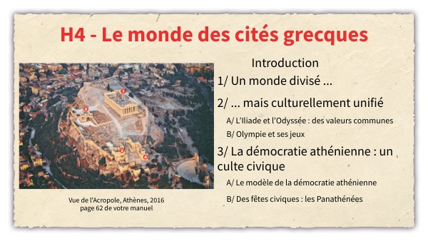 Objectif : Comprendre comment sont s'organise le monde grec et ce qui peut diviser les cités.