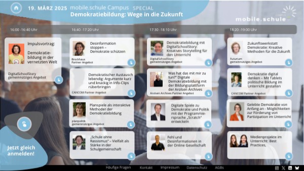 In diesem Workshop lernen Lehrkräfte aller Fächer, wie sie Tablets und digitale Formate gezielt für die Demokratiebildung im Unterricht nutzen können. Dabei geht es nicht nur um die Vermittlung von Wissen, sondern auch um handlungsorientierte und kreative Ansätze für den Fachunterricht: von der Erstellung politischer Memes und Fakenews bis hin zur kritischen Auseinandersetzung mit (KI-generierten) Inhalten in sozialen Netzwerken.