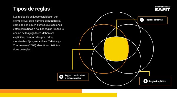 No tienen que ser conocidas por los jugadores. Son estructuras formales subyacentes que dictan la funcionalidad del juego por los diseñadores. Por ejemplo en Tetris, los diseñadores no mencionan los patrones de las fichas que caen o los sonidos que acompañan a cada figura, pero están predefinidos por reglas fijas. Estas reglas fundacionales son muy importante porque sirven para establecer la operatividad del sistema y sus interacciones.
