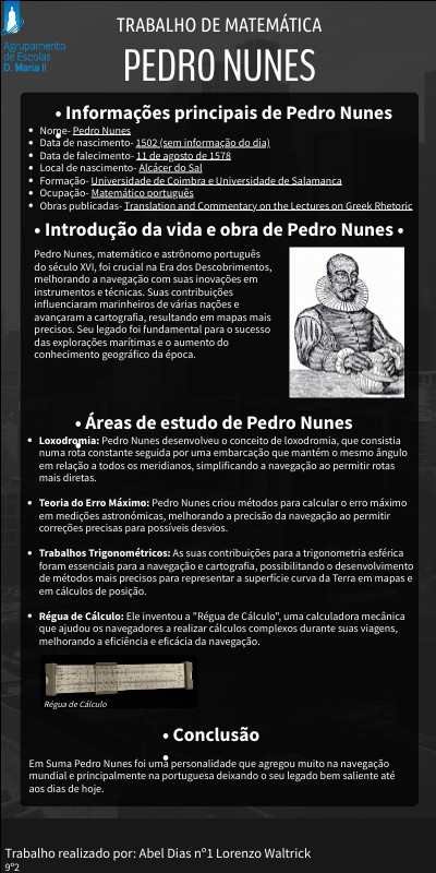 Em Suma Pedro Nunes foi uma personalidade que agregou muito na navegação mundial e principalmente na portuguesa deixando o seu legado bem saliente até aos dias de hoje.