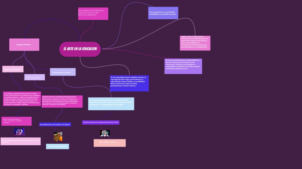 Busca fomnetar en las infancias la interses por la vida y el arte.Busca crear experiencias.