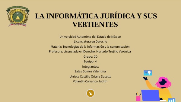 Universidad Autonóma del Estado de México Licenciatura en Derecho Materia: Tecnologías de la información y la comunicación Profesora: Licenciada en Derecho. Hurtado Trujillo Verónica Grupo: 0D Equipo: 4 Integrantes: Salas Gomez Valentina Urrieta Castillo Oriana Susette Volantin Carranco Judith