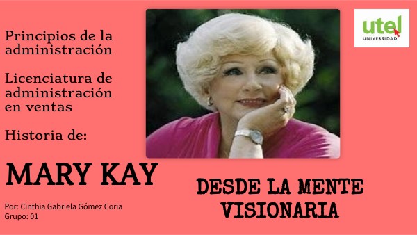 Mary Kay Ash una mujer que creo un negocio de talla internacional comenzando con solo cinco productos en un negocio local en Dallas Texas, con la ayuda de su hijo de 20 años inicio un 13 de septiembre de 1963, invirtio $5,000 que eran sus ahorros de su vida dando asi lugar a una idea millonaria con el fin de empoderar a las mujeres de dicha época creando un negocio de ventas independientes consciente de que el mercado era dominado principalmente por hombres.