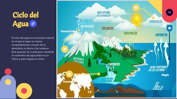 El ciclo del agua es el proceso natural en el que el agua se mueve constantemente a través de la atmósfera, la tierra y los océanos.Este proceso es crucial para mantener el suministro de agua dulce en la Tierra y para regular el clima.