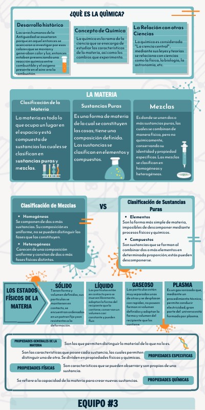 La química es la rama de la ciencia que se enecarga de estudiar las características de la materia, así como los cambios que experimenta.