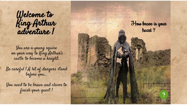 You are a young squire on your way to King Arthur's castle to become a knight. Be careful ! A lot of dangers stand before you... You need to be brave and clever to finish your quest !