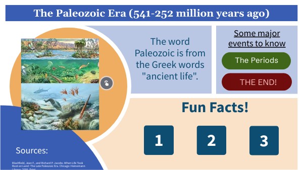It is important to know the periods of the Paleozic era. The first period was the Cambrian period which was know for the :age of the Trilobites". The next period was the Ordovician Period where glaciers started to form and sea levels dropped. The next was the Silurian Period, this is when plant life and animals stated to show up on land. The following period was the Devonian Period which ended with a mass extinction by a meteorite. The second to last period was the Carboniferous Period where large plants and trees became prevelent. And finally the ere ended with the Permian Period.
