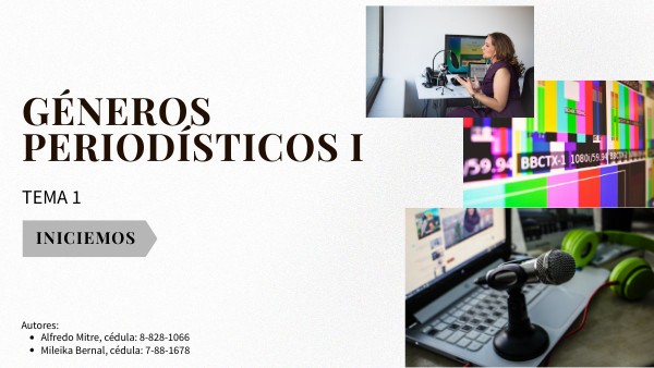 Proporcionar los conceptos y técnicas que hacen posible hoy el estudio y aprendizaje de los géneros periodísticos clásicos y su evolución, en especial en los medios escritos. Objetivo de la clase de hoy: Descubrir, analizar y explorar los diferentes géneros periodísticos, sus formatos de presentación, impacto y formas de desarrollo, de una manera interactiva, crítica y participativa de los estudiantes. Puntos clave de la clase:- Reconocer los diferentes géneros periodísticos en la gama de contenidos informativos de los medios de comunicación. - Identificar los roles de las personas y fuentes idóneas que participan en el desarrollo de estas piezas informativas.