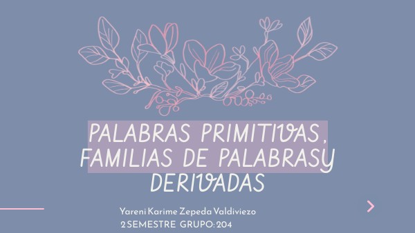 Presentación de palabras primitivas , derivadas , familia de palabras