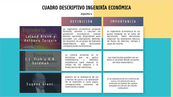 CUADRO DESCRIPTIVO INGENIRÍA ECONÓMICA