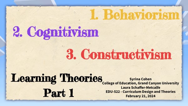 Syrina Cohen College of Education, Grand Canyon University Laura Schaffer-Metcalfe EDU-522 - Curriculum Design and Theories February 21, 2024