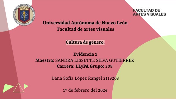 Cultura de género. Evidencia 1 Maestra: SANDRA LISSETTE SILVA GUTIERREZ Carrera: LLyPA Grupo: 209 Dana Sofía López Rangel 2119203 17 de febrero del 2024