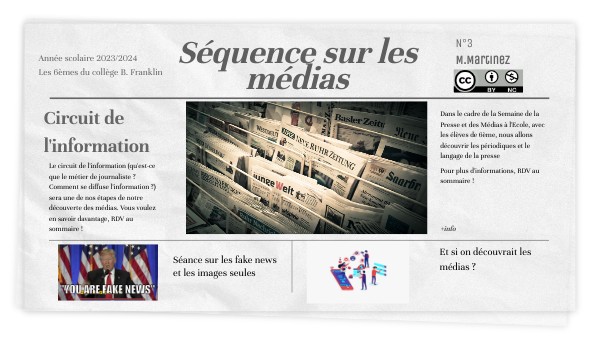 Dans le cadre de la Semaine de la Presse et des Médias à l'Ecole, avec les élèves de 6ème, nous allons découvrir les périodiques et le langage de la pressePour plus d'informations, RDV au sommaire !