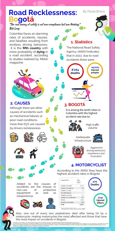Colombia faces an alarming rates of accidents, injuries, and fatalities resulting from reckless driving behaviors, it is the fifth country with more probability of dying in a road accident, according to studies realized by Motor magazine.