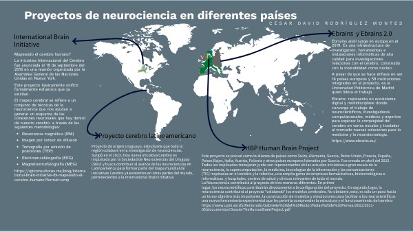 Mapeando el cerebro humano" La Iniciativa Internacional del Cerebro fue anunciada el 19 de septiembre del 2016 en una reunión organizada por la Asamblea General de las Naciones Unidas en Nueva York. Este proyecto básicamente unificó formalmente esfuerzos que ya existían. El mapeo cerebral se refiere a un conjunto de técnicas de la neurociencia que nos ayudan a generar un esquema de las conexiones neuronales que hay dentro de nuestro cerebro. a través de las siguientes metodologías: