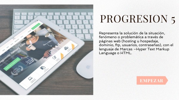 Representa la solución de la situación, fenómeno o problemática a través de páginas web (hosting u hospedaje, dominio, ftp, usuarios, contraseñas), con el lenguaje de Marcas –Hyper Text Markup Language o HTML.