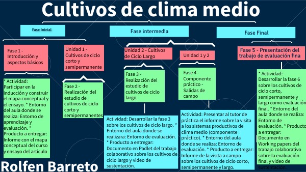 * Actividad: Desarrollar la fase 6 sobre los cultivos de ciclo corto, semipermanente y largo como evaluación final. * Entorno del aula donde se realiza: Entorno de evaluación. * Producto a entregar: Documento en Working papers del trabajo colaborativo sobre la evaluación final y video de sustentación.