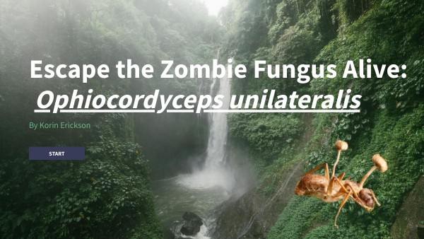 The rules of the game are simple. You must use all you can find, and all that you know to answer questions about Ophiocordyceps unilateralis. If you get the questions right, you survive and continue your escape from the ZOMBIE FUNGUS. If you get an answer wrong, then unfortunately, you become one of the many victims of O. unilateralis