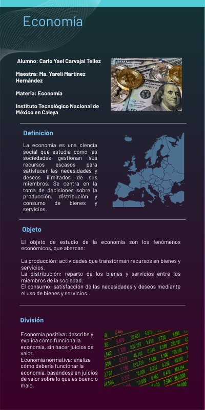 Alumno: Carlo Yael Carvajal Tellez Maestra: Ma. Yareli Martínez Hernández Materia: Economía Instituto Tecnológico Nacional de México en Caleya