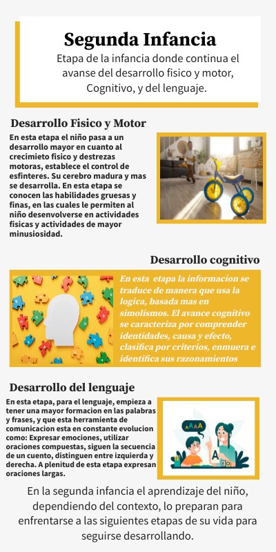 En la segunda infancia el aprendizaje del niño, dependiendo del contexto, lo preparan para enfrentarse a las siguientes etapas de su vida para seguirse desarrollando.