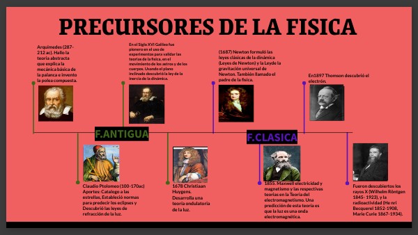 En el Siglo XVI Galileo fue pionero en el uso de experimentos para validar las teorias de la fisica, en el movimiento de los astros y de los cuerpos. Usando el plano inclinado descubrió la ley de la inercia de la dinámica.
