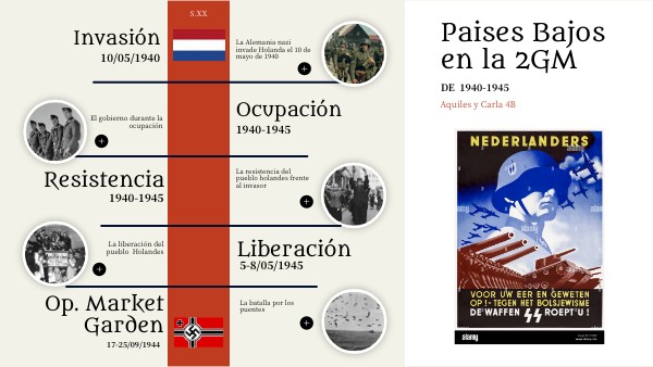 Paises Bajos fue invadido el 10 de Mayo de 1940. Alemania hizo un ataque rapido y sorpresivo con fuerzas blindadas y paracaidistas y sus 150.000 soldados con experienza en la "Blitzkriegt". Estaban mejor equipados que el ejercito holandes, que contaba con 450.000 soldados, sin mucha experiencia y con peor equipacion. Holanda se defendio todo lo que pudo, pero acabo cayendo. La invasion terminó con la rendición del gobierno neerlandes el 15 de Mayo del mismo año.