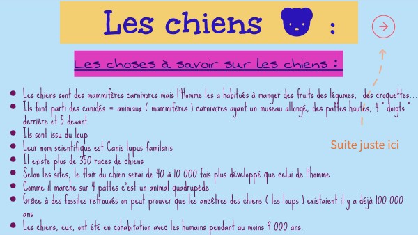- Les chiens sont des mammifères carnivores mais l'Homme les a habitués à manger des fruits des légumes, des croquettes...