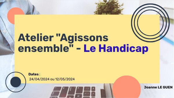 Les ateliers "Agissons ensemble" sont des ateliers qui impulsent des dynamiques collaboratives au sein du groupe LA POSTE. Ils mobilisent les collaborateurs (postiers, développeurs, commercial, ressources humaines, alternants...) pour les fédérer, les faire se connaître et co-construire des innovations afin de faire grandir le groupe. Ils sensibilisent ainsi aux thématiques souhaitées et donnent une place de professionnel-acteur dans la construction de la politique LA POSTE et de l'engagement social de ses salariés. Les participants s’engagent sur ces ateliers guidés par des coachs facilitateurs formés en Design Thinking suivant la méthodologie des organisations apprenantes. Chaque atelier est l'occasion de développer des soft skills mais aussi de participer au développement du groupe. Pour ce premier atelier, nous nous pencherons sur une thématique importante au sein du groupe LA POSTE : celle du Handicap.