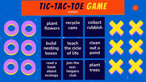 It is always played between 2 players. Each player chooses a shape (O or X). At each turn each player places one of his pieces. The player who manages to place 3 pieces in a row in a horizontal, vertical or diagonal line wins the game. Once all the available spaces are filled, if nobody manages to place 3 pieces in a row, the game ends in a draw.