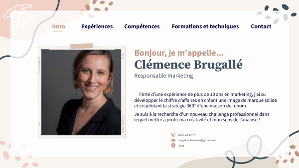 Forte d’une expérience de plus de 10 ans en marketing, j’ai su développer le chiffre d’affaires en créant une image de marque solide et en pilotant la stratégie 360° d’une maison de renom. Je suis à la recherche d'un nouveau challenge professionnel dans lequel mettre à profit ma créativité et mon sens de l’analyse !