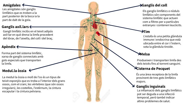 Forma part del sistema limfàtic, xarxa de ganglis connectats amb gots especials que transporten la limfa.