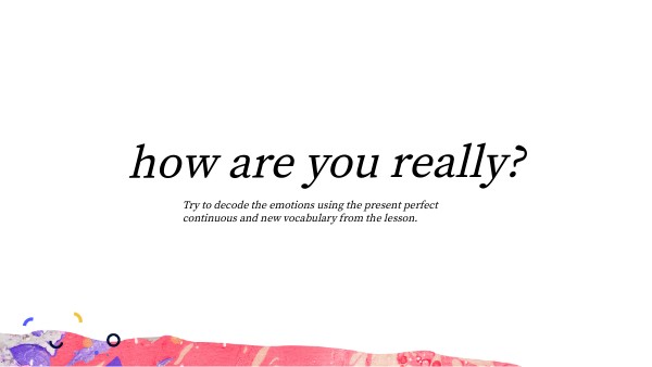 Try to decode the emotions using the present perfect continuous and new vocabulary from the lesson.