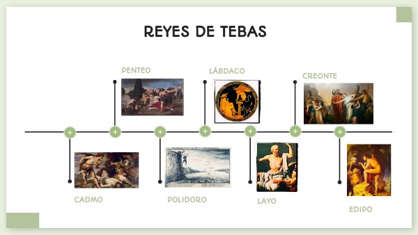 Protagonista de la famosa tragedia "Edipo Rey" de Sófocles. Era hijo de Layo, rey de Tebas, y Yocasta. Un oráculo había predicho que Edipo mataría a su padre y se casaría con su madre, lo que llevó a Layo a abandonar a su hijo recién nacido. Sin embargo, Edipo fue encontrado y criado en Corinto por otra familia. Desconociendo su verdadera identidad, Edipo mató a Layo en un encuentro casual en la carretera, cumpliendo así la primera parte de la profecía. Luego llegó a Tebas, donde resolvió el enigma de la Esfinge y se convirtió en rey, casándose inadvertidamente con su madre, Yocasta. Cuando descubrió la verdad, Yocasta se suicidó y Edipo se cegó a sí mismo.