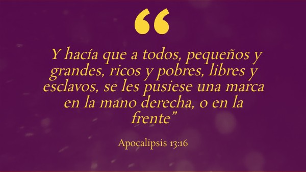 Y hacía que a todos, pequeños y grandes, ricos y pobres, libres y esclavos, se les pusiese una marca en la mano derecha, o en la frente”